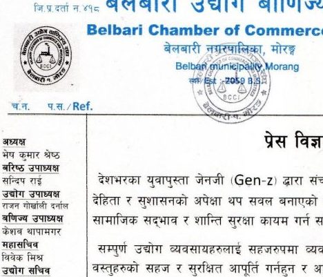सामाजिक सद्भाव र शान्ति–सुरक्षा कायम गर्न बेलबारी उद्योग वाणिज्य संघको अपिल
