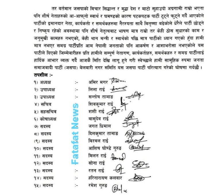 - जसपा बेलबारी नगर समितिका सबैले छाडे पार्टी