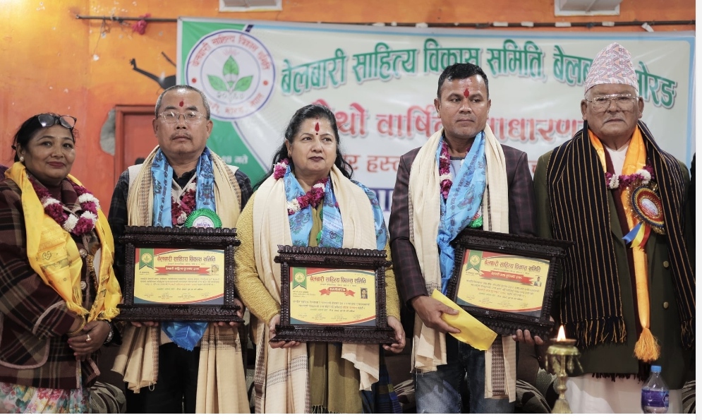 बेलबारी साहित्य विकास समितिको चौथो साधारणसभा तथा श्रष्टा सम्मान कार्यक्रम सम्पन्न भएको छ । नेपाल प्रज्ञा प्रतिष्ठानका उपकुलपति डाक्टर जगमान गुरुङको प्रमुख आतिथ्य र बेलबारी साहित्य विकास समितीकी अध्यक्ष तिला लेकालीको सभापतित्वमा शनिबार साधारणसभा, सम्मान तथा साँस्कृतिक बिमर्श कार्यक्रम भएको हो । बेलबारी १ स्थित मदन आश्रित स्मृति भवनमा भएको... पुरा पढ्नुहोस