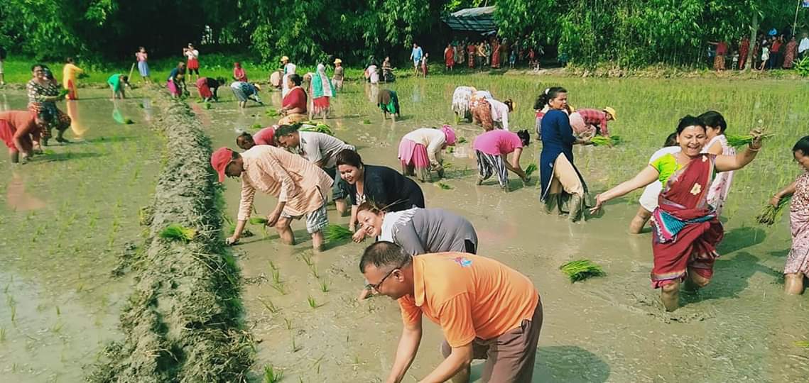 लालभित्तिमा सामुहिक धान रोपाइँ कार्यक्रम सम्पन्न, मेयर अनि उपमेयरले पनि रोपे धान