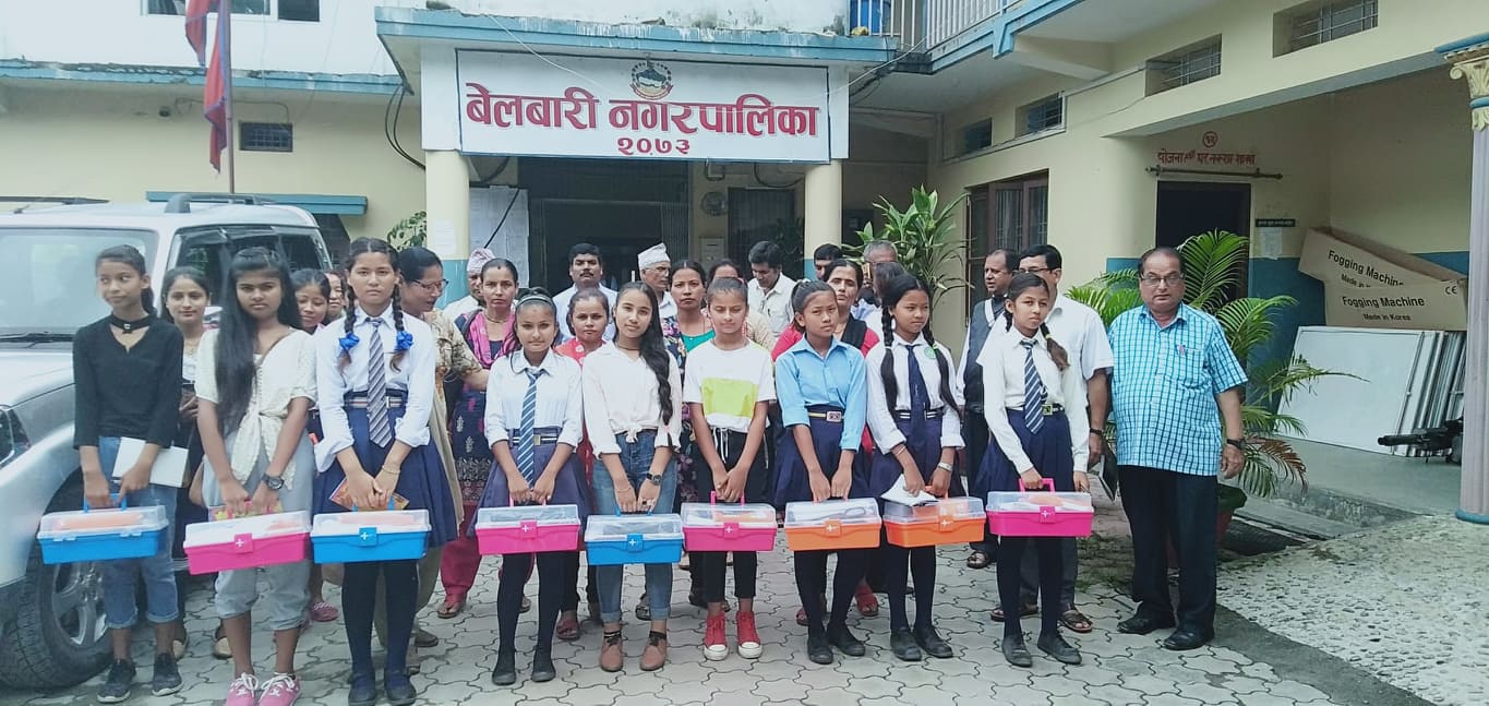 बिद्यार्थीलाई सेनटरी प्याड बनाउन सिकाउदै बेेेलबारी नगरपालिका