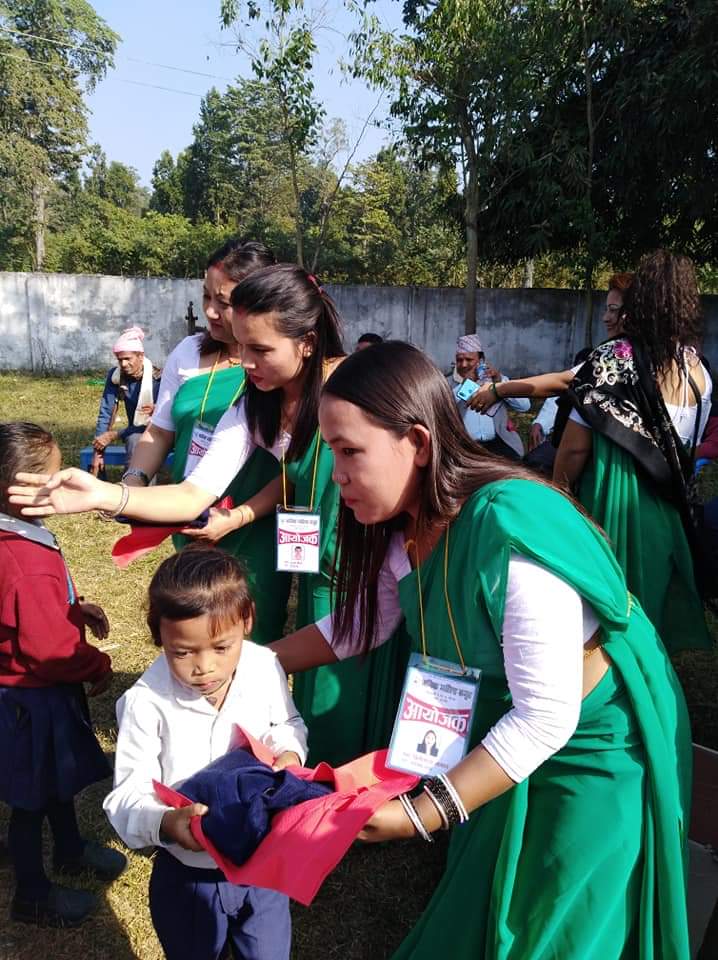 श्रमिक महिला समूहद्वारा बालबालिका लाई न्यानाे लुगा वितरण
