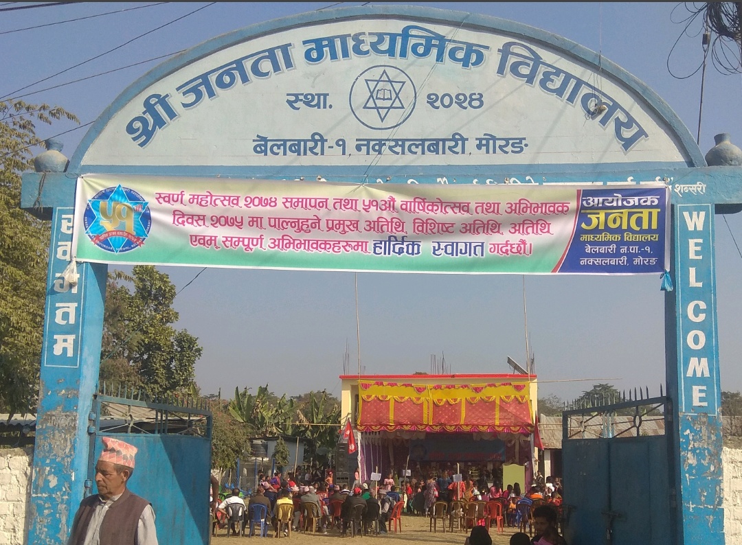 कुनैबेला अहिलेका राष्ट्रपति विद्यादेवी भण्डारीले पढाएको बेलबारी १ मा अबस्थित जनता माध्यमिक विद्यालयको स्वर्ण महोत्सव २०७४ को समापन तथा ५१ औं बार्षिकोत्सव उद्घाटन भएको छ । ५१ औं बार्षिक उत्सव कार्यक्रमको अबसरमा शनिबार स्वर्ण महोत्सवको समापन तथा ५१ औं बार्षिकोत्सबको उद्घाटन गरिएको हो । बिक्रम सम्बत २०२४ सालमा स्थापित विद्यालयले... पुरा पढ्नुहोस