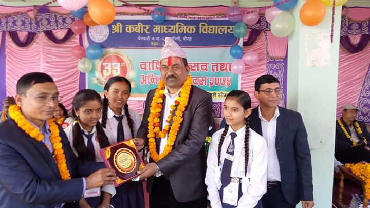केशु विरही, बेलबारी, माेरङ / विगत लामाे समयदेखि गुणस्तरीय शिक्षा प्रवाह गर्दै माेरङ जिल्लाकै एक उत्कृष्ठ सामुदायिक विद्यालयकाे रुपमा स्थापित कविर माध्यमिक विद्यालय बेलबारीले साेमबार एक कार्यक्रमवित अाफ्नाे ३३ अाैं वार्षिक उत्सव तथा अभिभावक दिवश सम्पन्न गर्याे । बेलबारी नगरपालिका वार्ड नं २ लालभित्तीमा रहेकाे विद्यालयकाे प्राङ्गणमा सम्पन्न वार्षिक उत्सव... पुरा पढ्नुहोस