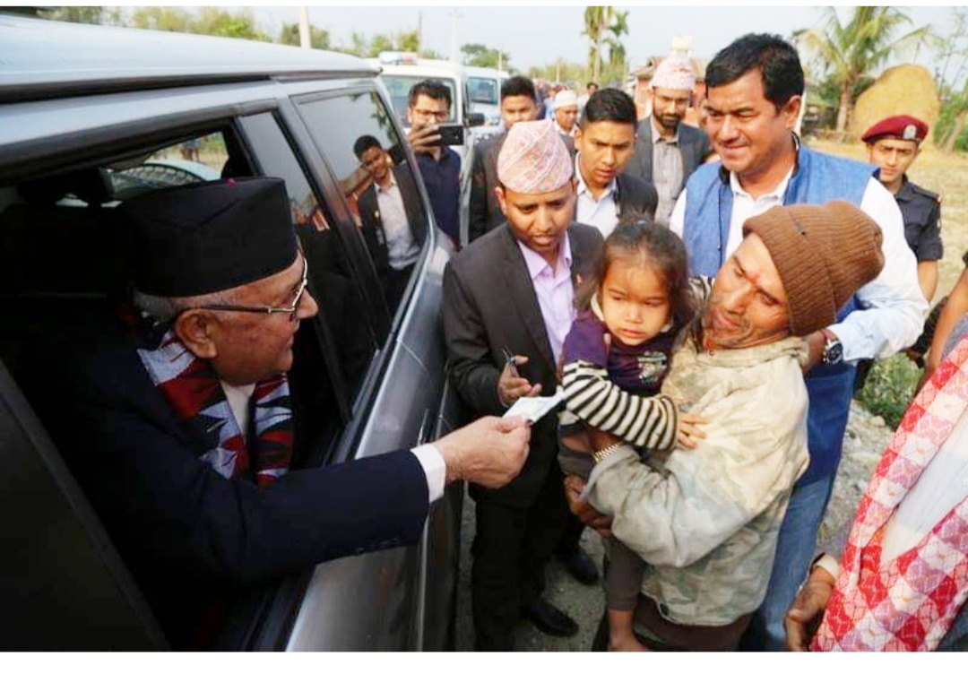 झापामा जब प्रधानमन्त्री ओलीले एक नावालिकाको हातमा हजारको नोट थमाए…