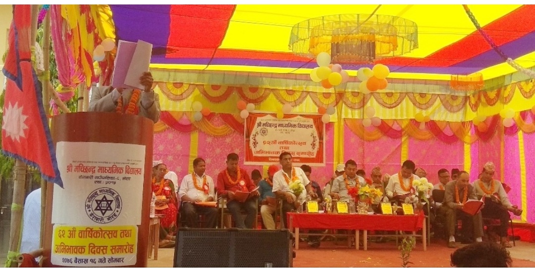 मोरङको केराबारी गाउँपालिका ८ स्थित मच्छिन्द्र माध्यमिक विद्यालयको ६२ औं बार्षिकोत्सव तथा अभिभावक दिवस विभिन्न कार्यक्रमका साथ मनाइएको छ । विद्यालयको आफ्नै प्राङ्गणमा सोमबार औपचारिक कार्यक्रम गरी बार्षिकोत्सब मनाइएको हो । विद्यालय ब्यबस्थापन समिति अध्यक्ष रोहितकुमार कटुवालको सभापतित्वमा भएको कार्यक्रममा केराबारी गाउँपालिका अध्यक्ष रोहितबहादुर कार्की प्रमुख अतिथि थिए । कार्यक्रममा... पुरा पढ्नुहोस