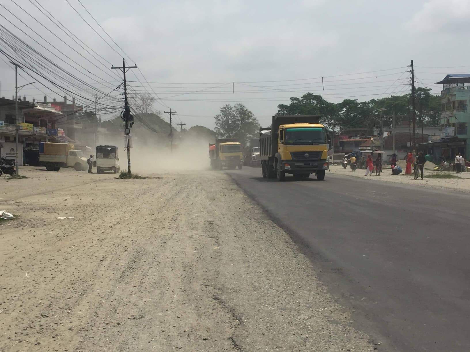 राजमार्गमा गुड्ने सवारीको धुलोका कारण आक्रान्त छन् सुन्दरहरैंचाबासी