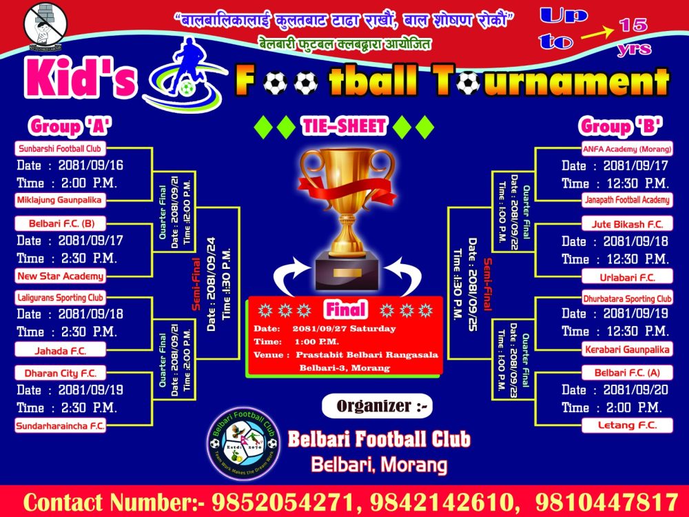बेलबारीमा प्रदेशस्तरीय अप टु १५ किड्स खुल्ला नकआउट फुटबल प्रतियोगिता हुँदै