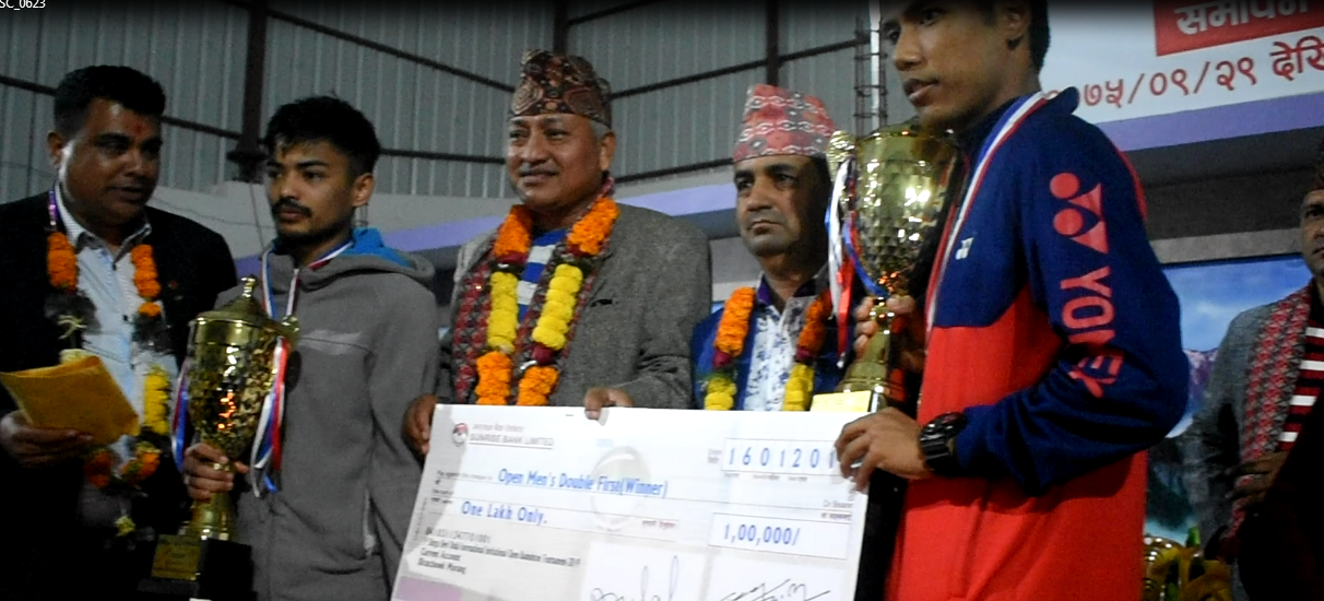 अन्तराष्ट्रिय व्याडमिन्टन प्रतियोगिता सम्पन्न, डवल मेन्सतर्फकाे उपाधि सेनाकाे टिमलाई