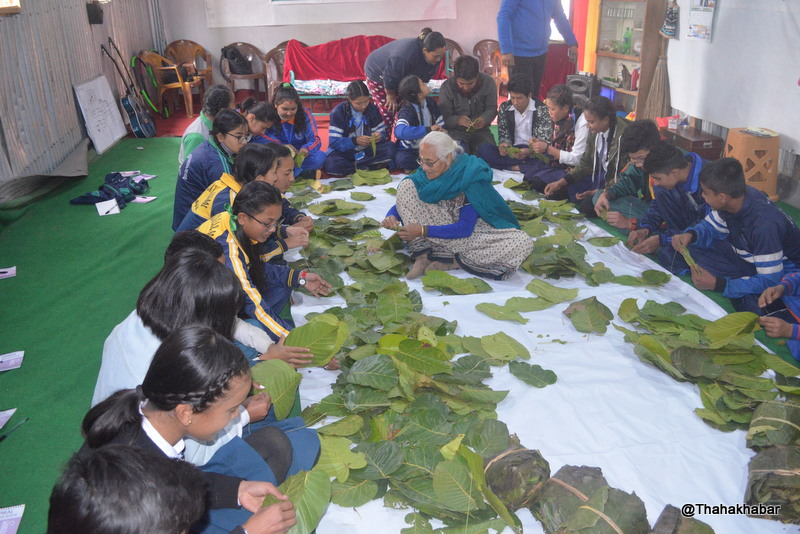 धनकुटामा दुना टपरी प्रबर्द्धन गरिंदै, विद्यार्थीलाई सिकाउन थालियो दुना टपरी गांस्न