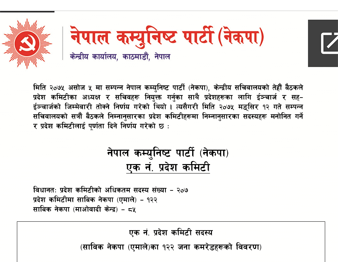 को को परे नेकपाको १ नम्बर प्रदेश कमिटीमा, थाहा छ ?