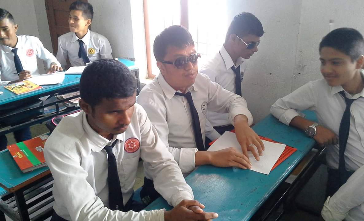 चौध बर्षदेखि दृष्टिबिहिनलाई पढाउंदै कबीर मावि, अन्य विद्यार्थीसंगै बसेर पढ्छन् दृष्टिबिहीन पनि