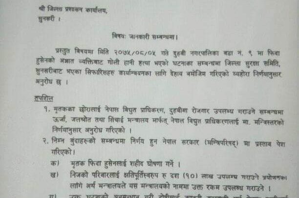 हत्या गरिएका फिदाका आफन्त र सरकारबीच सहमति भएपछि शान्त बन्दै दुहबी